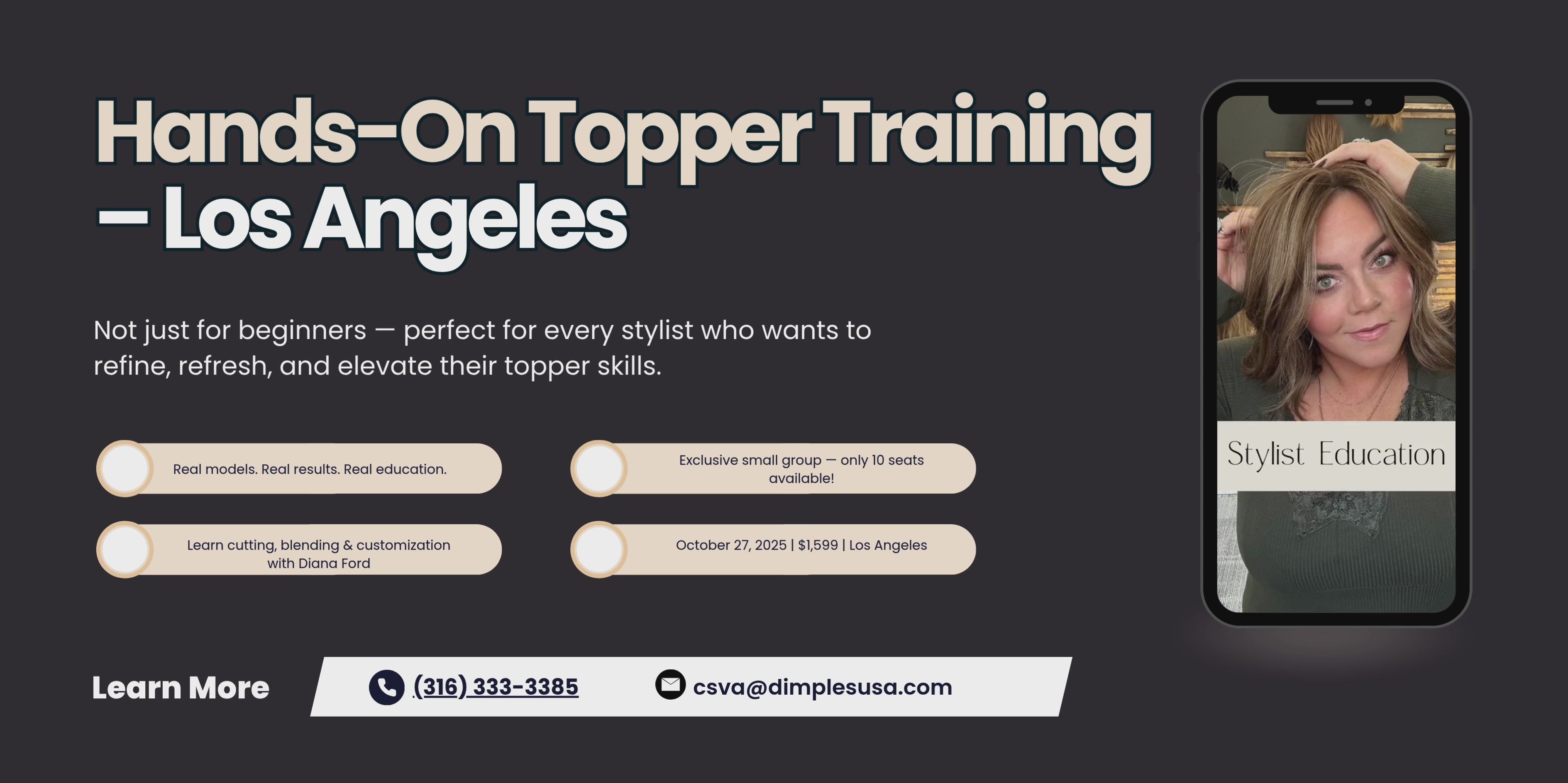 You'll have your own head, with your own station to work on your toppers, as you follow along with our educator: Diana Ford (12 year educator for Jon Renau and Cesar Regazi).